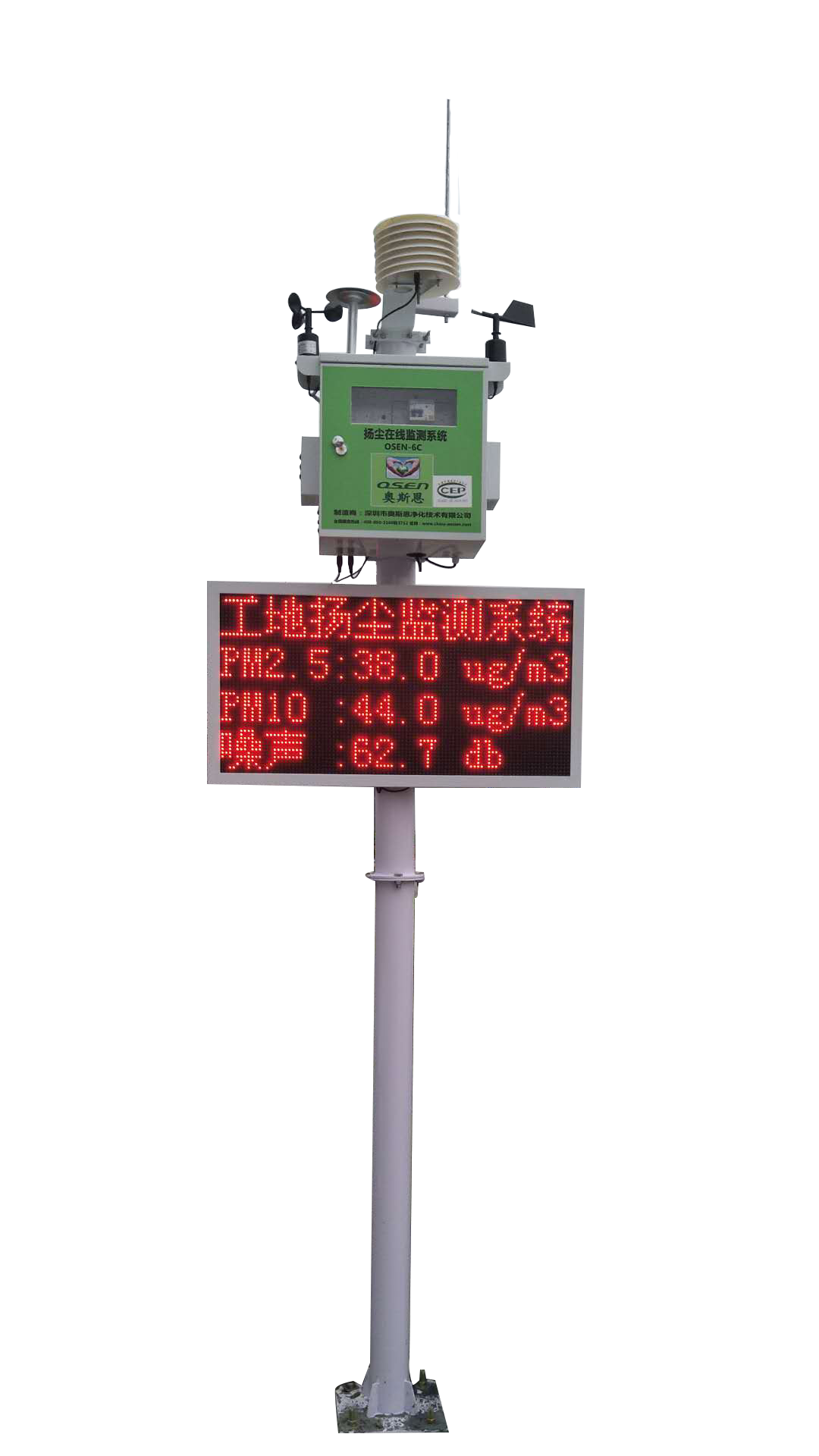 除了檢測PM2.5、PM10、TSP和噪聲等因素外,還可以檢測空氣溫度、空氣濕度、光照、大氣壓力、風(fēng)速、風(fēng)向等氣象參數(shù),能夠為揚塵污染防治工作提供多種數(shù)據(jù)參考;