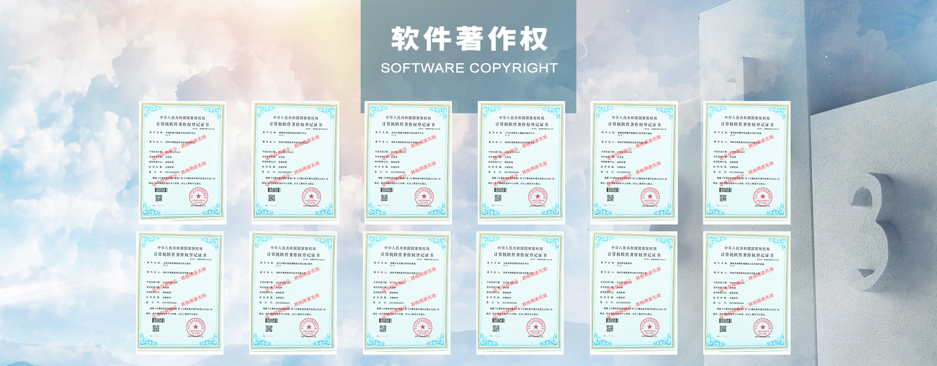喜迎12項(xiàng)軟件著作權(quán)證書,分別是:秸稈焚燒管控云平臺(tái)、濕度漂移修正系數(shù)算法軟件、環(huán)境監(jiān)測(cè)數(shù)據(jù)交換軟件平臺(tái)、智慧環(huán)境視頻監(jiān)控管理平臺(tái)、智能化多維度AI算法環(huán)境云平臺(tái)、智慧環(huán)境數(shù)據(jù)客戶端軟件、便攜式空氣污染溯源嵌入式軟件、工業(yè)粉塵污染在線智管云平臺(tái)、智慧燈桿型環(huán)境監(jiān)測(cè)系統(tǒng)、碳排放達(dá)峰大數(shù)據(jù)平臺(tái)軟件、機(jī)動(dòng)車尾氣遙感監(jiān)測(cè)系統(tǒng)、碳排放成分監(jiān)測(cè)系統(tǒng)平臺(tái)。