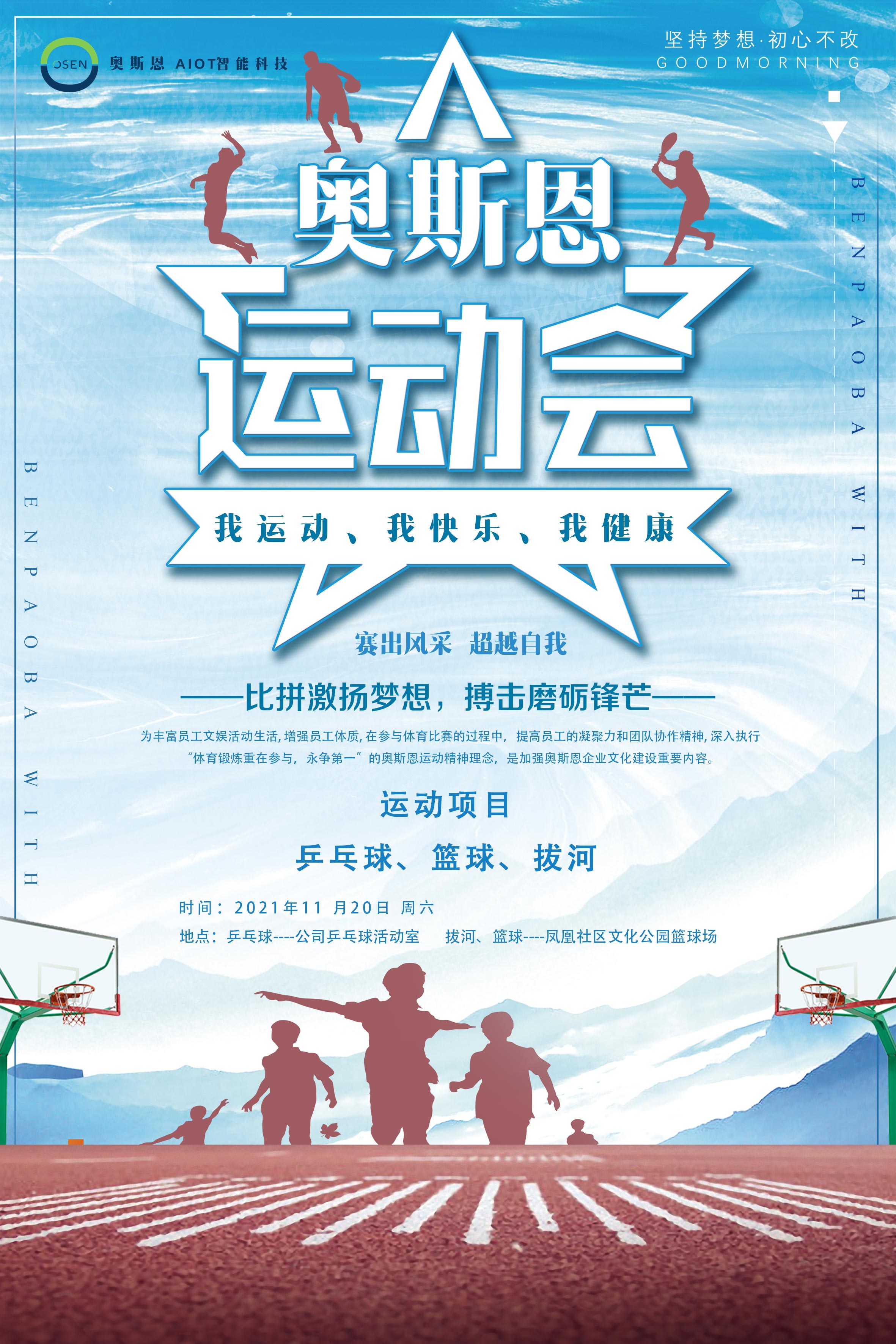 11月20日,奧斯恩舉辦以“我運動、我快樂、我健康”為主題的趣味運動會,本次趣味運動會設(shè)立了“單人項目:男/女子乒乓球單打;團(tuán)體項目:乒乓球男女混合雙打、拔河團(tuán)隊賽、籃球團(tuán)隊賽。
