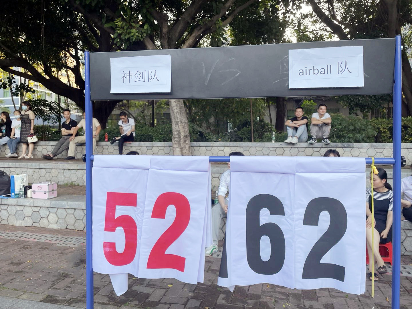 接著上場的兩個(gè)隊(duì)伍是紅牛隊(duì)PKairball隊(duì),實(shí)力相當(dāng)?shù)膬芍魂?duì)伍在球場上上演著你追我趕的場面,大家都想爭取進(jìn)入決賽圈拿獎金呢。