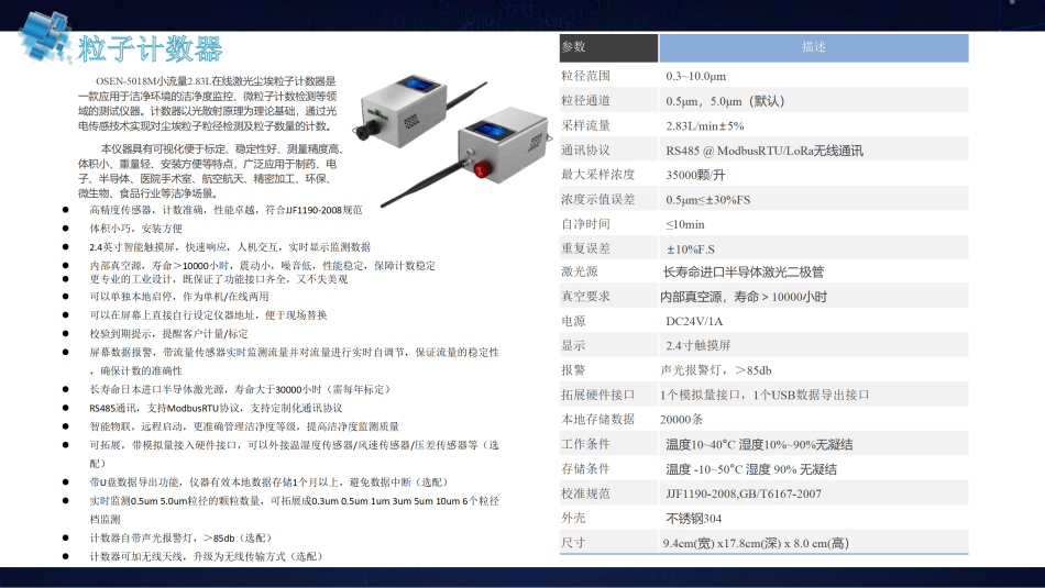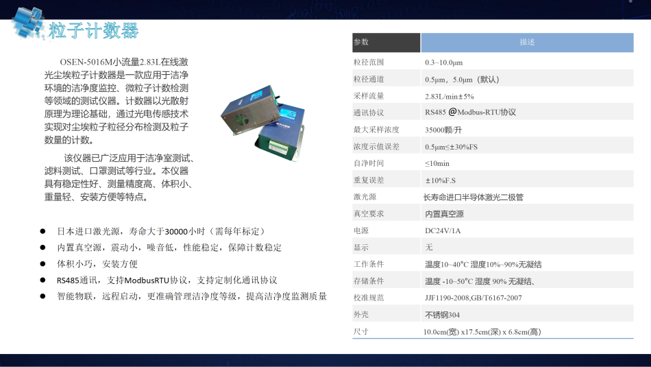 通過OSEN-5016M/5104M粒子計數(shù)器(0.5、5.0微米 2.83/28.3升/分鐘)用以監(jiān)測空氣中的粒子數(shù)量