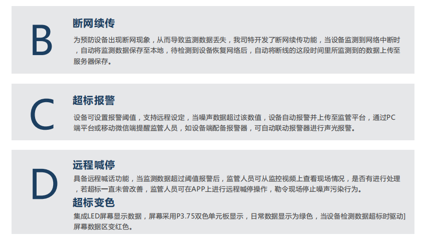 奧斯恩OSEN-Z通過物聯(lián)網(wǎng)技術(shù)與現(xiàn)場端儀器儀表進(jìn)行互聯(lián)互通,完成對環(huán)境噪聲數(shù)據(jù)實(shí)時(shí)采集,并對采集數(shù)據(jù)統(tǒng)計(jì)分析,計(jì)算噪聲值,是一種簡易型的戶外噪聲自動(dòng)監(jiān)測系統(tǒng),它由數(shù)據(jù)顯示大屏、噪聲傳感器、數(shù)據(jù)采集統(tǒng)計(jì)分析軟件、GPRS無線傳輸模塊、服務(wù)器云平臺軟件、微信客戶端等部分組成。噪聲計(jì)測量范圍大、功能強(qiáng)穩(wěn)定性好、可實(shí)現(xiàn)遠(yuǎn)程視頻監(jiān)控、遠(yuǎn)程廣播喊話等功能。廣泛應(yīng)用于建筑施工噪聲監(jiān)測。